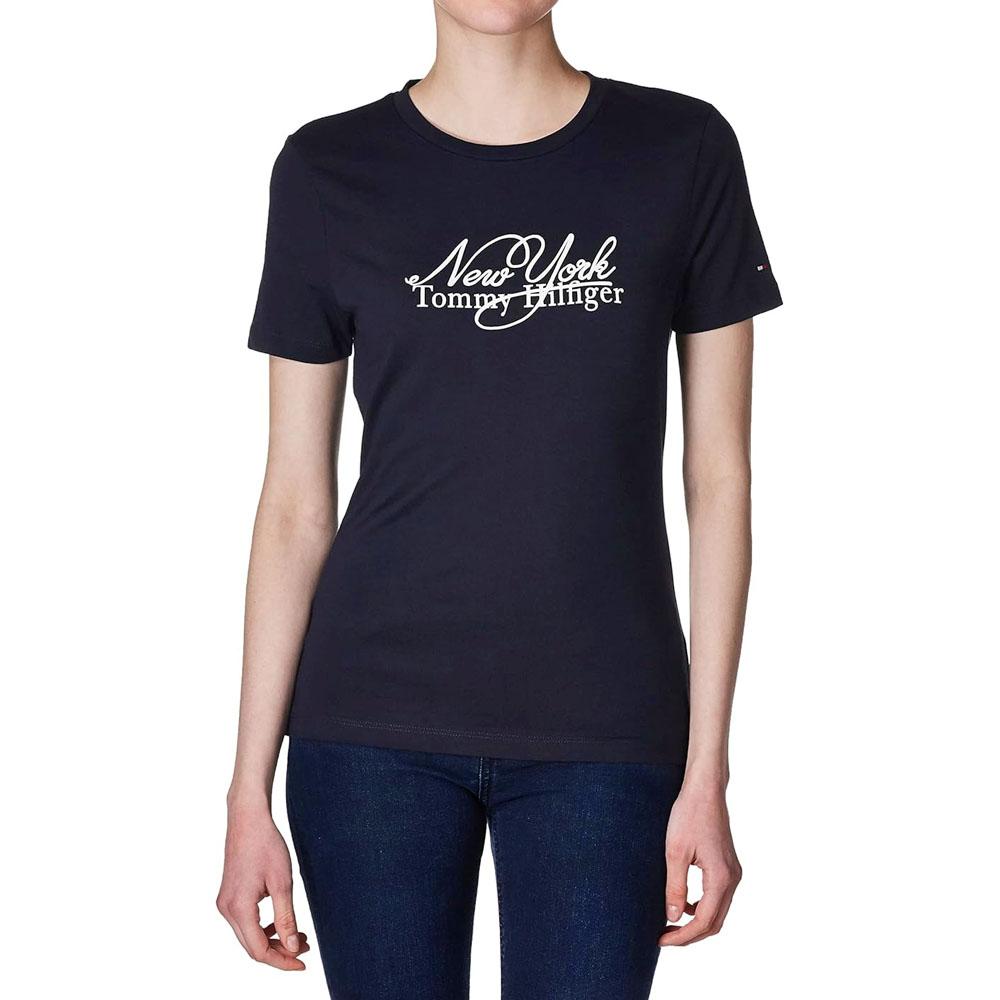 Tommy Hilfiger Remera Femenino IM SLIM LUX NY SCRIPT O-NK SS DESERT SKY