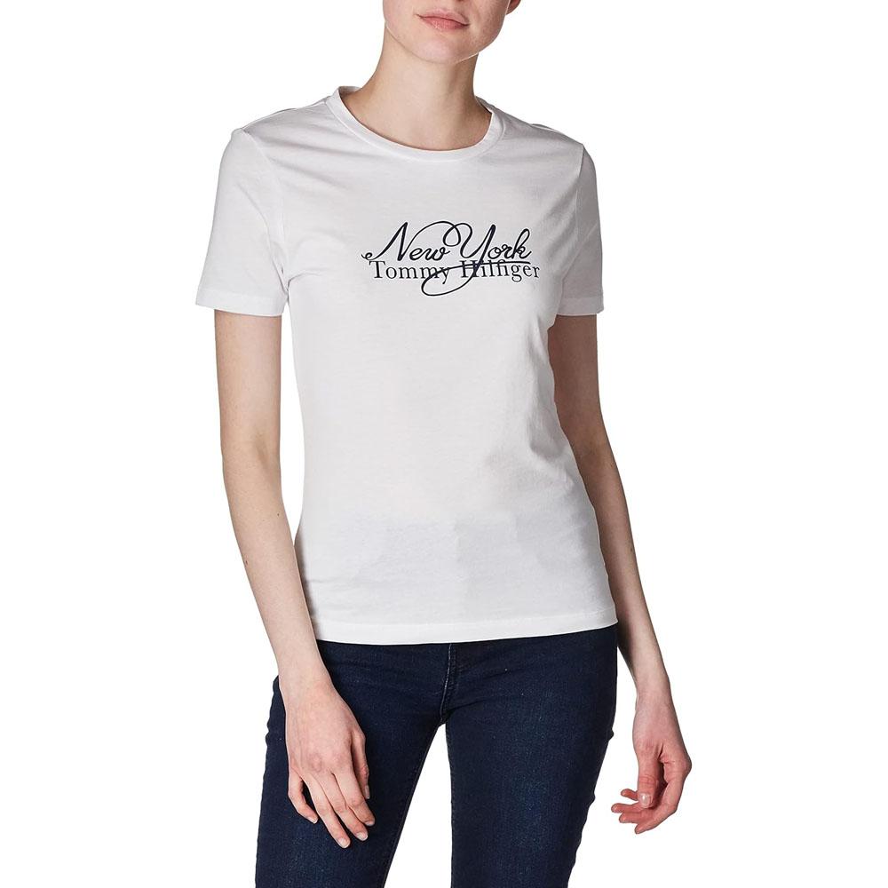 Tommy Hilfiger Remera Femenino IM SLIM LUX NY SCRIPT O-NK SS OPTIC WHITE